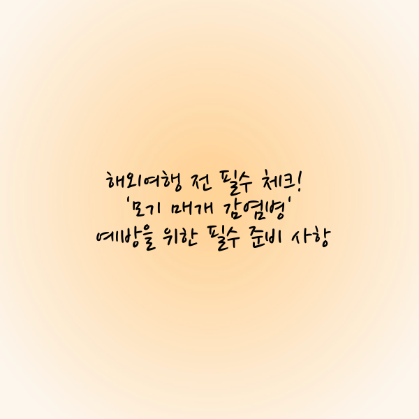 해외여행이 다시 활기를 띠면서 해외유입 감염병의 급증이 우려되고 있습니다. 특히, 백신이 없는 '모기 매개 감염병'에 대한 경보가 내려진 상황에서, 출국 전 필수로 준비해야 할 사항들이 더욱 중요해졌습니다. 모기에 의해 전파되는 질병들은 예방 백신이 없고, 특정 지역에서 특히 활발하게 발생할 수 있어 여행 전 철저한 준비가 필요합니다. 여행의 즐거움을 누리기 위해서는 출국 전 반드시 확인하고 대비해야 할 사항들이 무엇인지 알아보겠습니다.