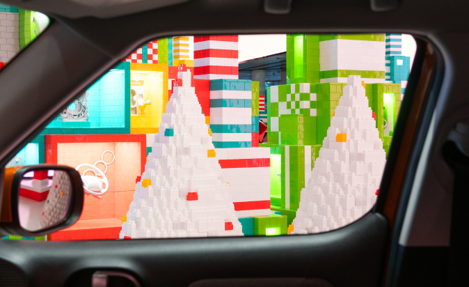 - 현대자동차의 폐부품과 브릭으로 제작된 대형 크리스마스트리가 전시 중심에 자리하고 있습니다. 친환경적인 메시지와 함께 독창적인 디자인이 방문객들의 시선을 사로잡습니다.