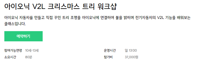 아이오닉 V2L 크리스마스 트리 워크샵 예약하기