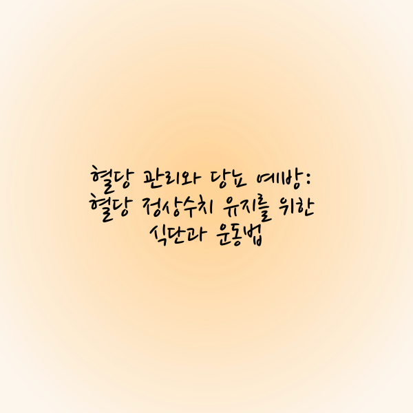 혈당 관리와 당뇨 예방: 혈당 정상수치 유지를 위한 식단과 운동법