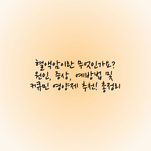 현대 사회에서 암은 많은 이들이 두려워하는 질병 중 하나로 꼽힙니다. 그중에서도 혈액암은 비교적 생소하지만, 조기 발견과 적절한 관리가 중요합니다. 혈액암은 혈액을 만드는 세포나 면역 세포에서 발생하는 암세포로 인해 발생하는 질환으로, 전 세계적으로 다양한 원인과 증상을 보입니다. 이번 글에서는 혈액암의 정의, 발생 원인, 초기 증상, 그리고 예방 및 관리법에 대해 자세히 알아보겠습니다.