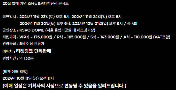 조용필 2024년 20집 발매 기념 콘서트 예매 일정