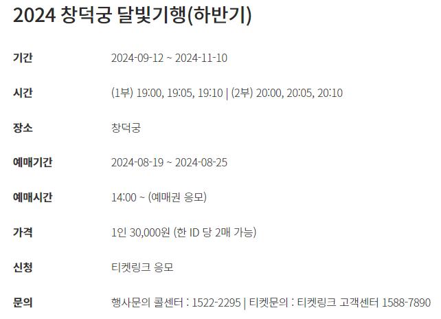 2. 2024 하반기 창덕궁 달빛기행 예매 안내