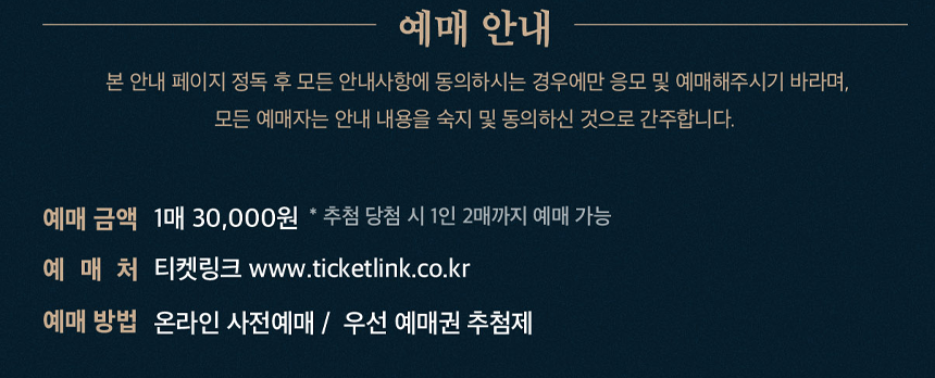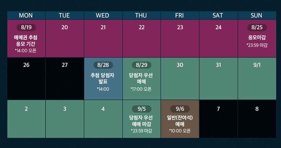 - 당첨자 우선 예매: 08월 29일 (목) 17시 ~ 09월 05일 (목) 23시 59분