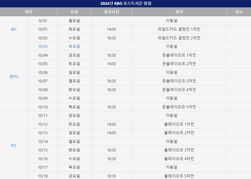 1. 2024 KBO 포스트시즌 경기 일정