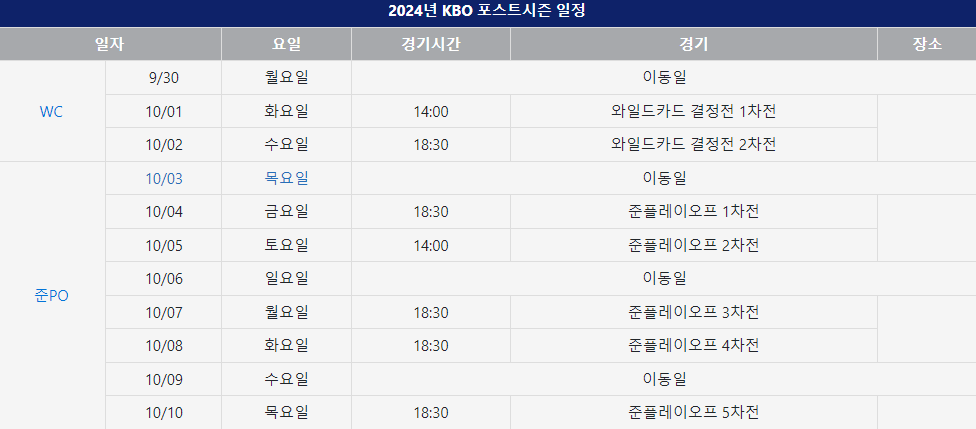 3. 2024 포스트시즌 경기 대진표 및 일정 안내