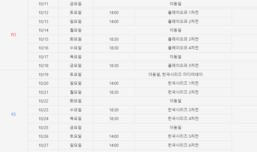 3.3. 플레이오프 (10월 11일 ~ 10월 17일)