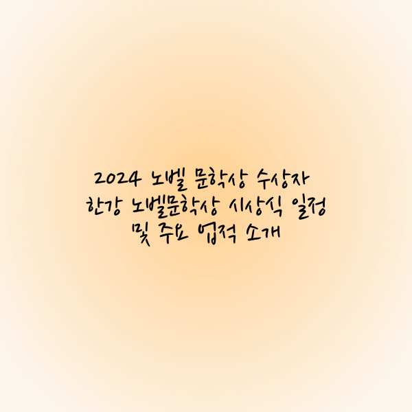 - 노벨 문학상 시상식은 매년 12월 10일 스웨덴 스톡홀름에서 열리며, 이 자리에서 한강은 상금 1천100만 크로나(약 13억4천만 원)와 메달, 증서를 받게 됩니다. 한강의 이번 수상은 한국 문학이 세계적으로 더 주목받을 수 있는 중요한 기회가 될 것입니다.