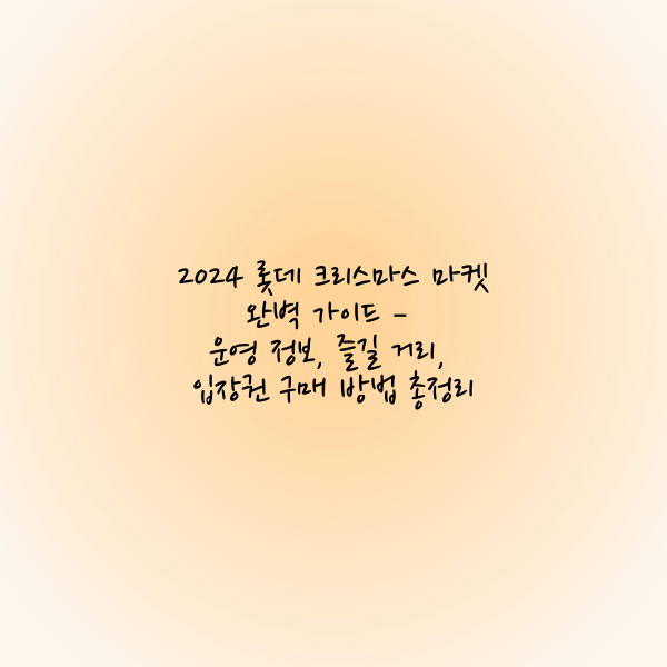 따뜻한 조명 아래 빛나는 크리스마스 트리, 가족과 연인을 위한 다양한 프로그램, 맛있는 디저트와 독특한 소품들까지, 모든 것이 방문객들에게 잊지 못할 추억을 선사합니다. 이 글에서는 2024 롯데 크리스마스 마켓의 운영 정보부터 입장권 구매 방법, 즐길 거리와 특별 혜택까지 구체적으로 안내합니다.