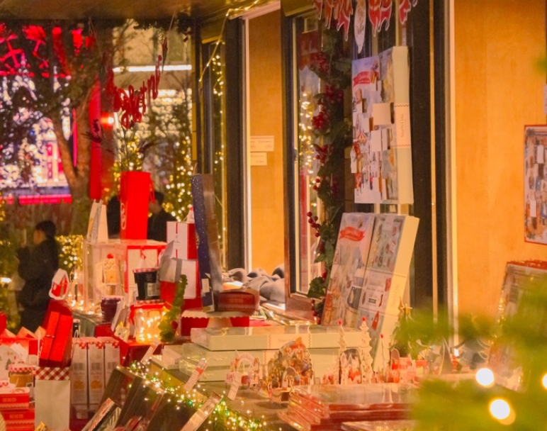 마켓의 핵심 공간인 크리스마스 타운은 가족과 연인을 위한 필수 방문 장소입니다.