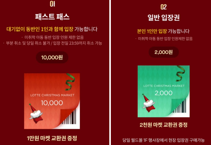롯데월드몰 크리스마스 마켓 패스트 패스 입장권 구매하기