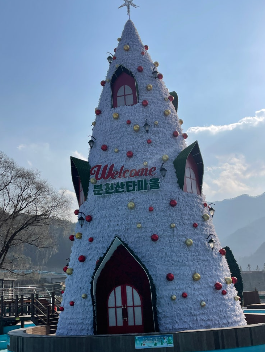 - 마을 전체가 산타 테마로 꾸며져 있으며, 하얀 눈이 덮인 풍경과 함께 빨간 산타 조형물이 조화를 이룹니다. 눈사람과 크리스마스트리로 장식된 거리는 겨울철 사진 명소로도 유명합니다.