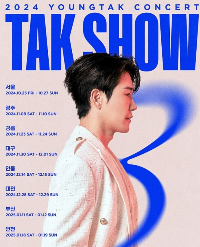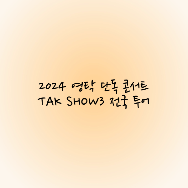 2024년, 가수 영탁이 그의 세 번째 단독 콘서트 **"TAK SHOW3"**로 전국 투어를 시작합니다. 이번 콘서트는 서울을 비롯해 광주, 강릉, 대구 등 대한민국 주요 도시에서 열리며, 팬들에게 영탁의 히트곡과 신곡을 라이브로 감상할 수 있는 특별한 기회를 제공합니다.