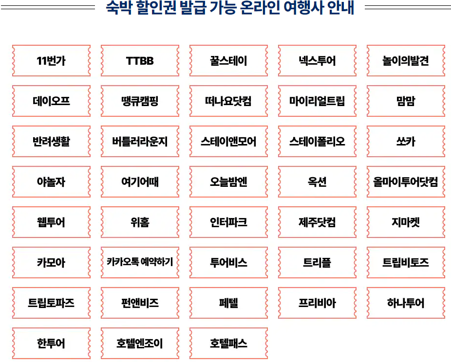 - 참여 온라인 여행사에서 할인권을 발급받습니다.