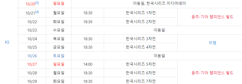 이후 경기 일정은 상황에 따라 변경될 수 있으며, 대구, 수원, 서울 고척돔과 같은 다른 구장에서 열릴 가능성도 있습니다.