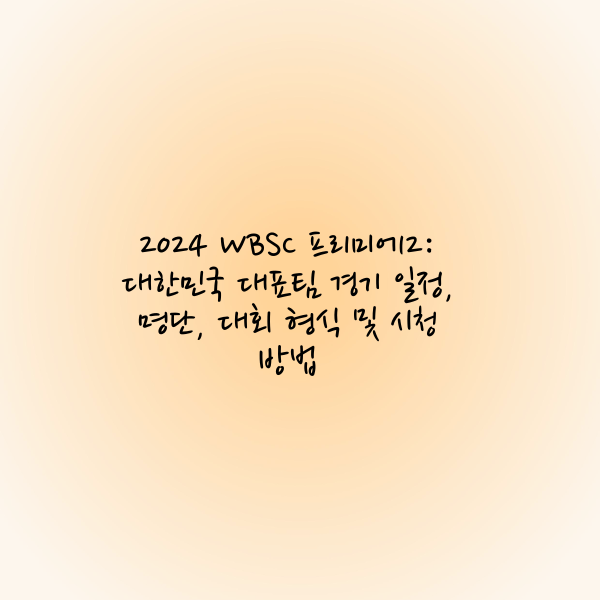 전 세계 야구 팬들이 기다려온 2024 WBSC 프리미어12 대회가 곧 개막합니다. 이번 대회는 11월 10일부터 11월 24일까지 진행되며, 대한민국 대표팀도 출전하여 치열한 경쟁 속에서 세계 정상에 도전할 예정입니다. 특히, 대한민국과 일본, 대만 등 야구 강호들과의 맞대결이 많은 팬들의 이목을 집중시키고 있습니다. 이번 포스트에서는 대한민국 대표팀의 경기 일정, 선수 명단, 대회 형식 및 시청 방법을 소개해드리겠습니다.