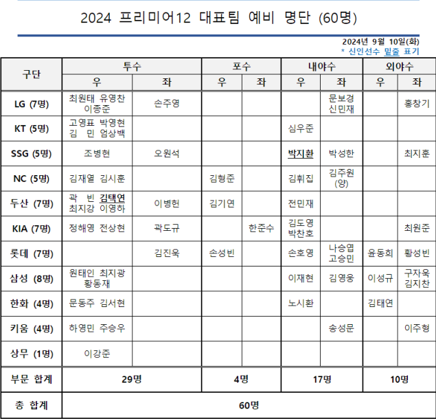 - 최원준: 대표팀의 마운드를 든든히 지킬 베테랑 투수로, 그의 경험이 팀에 큰 도움이 될 것입니다.