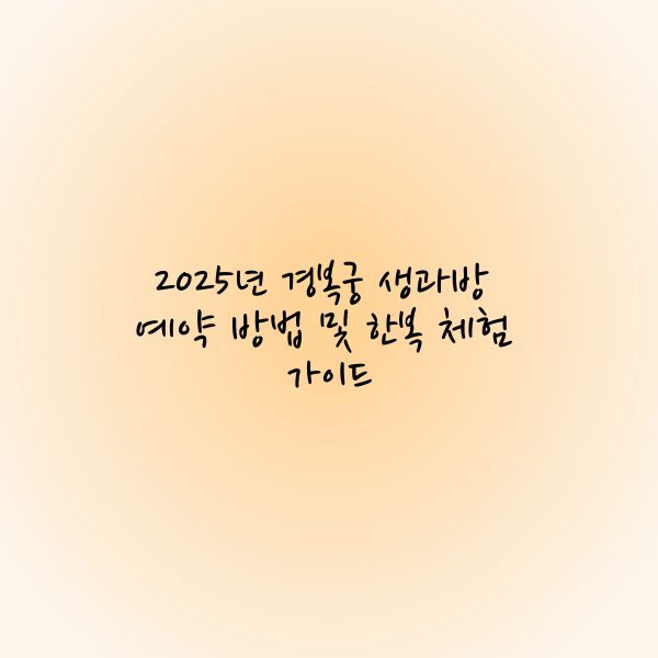 경복궁 생과방은 조선 시대의 궁중 다과 문화를 직접 체험할 수 있는 특별한 프로그램으로, 한국의 전통을 깊이 경험할 수 있는 기회를 제공합니다. 2025년에는 4월부터 6월까지 운영되며, 예약은 추첨제로 진행되므로 미리 응모하는 것이 중요합니다.