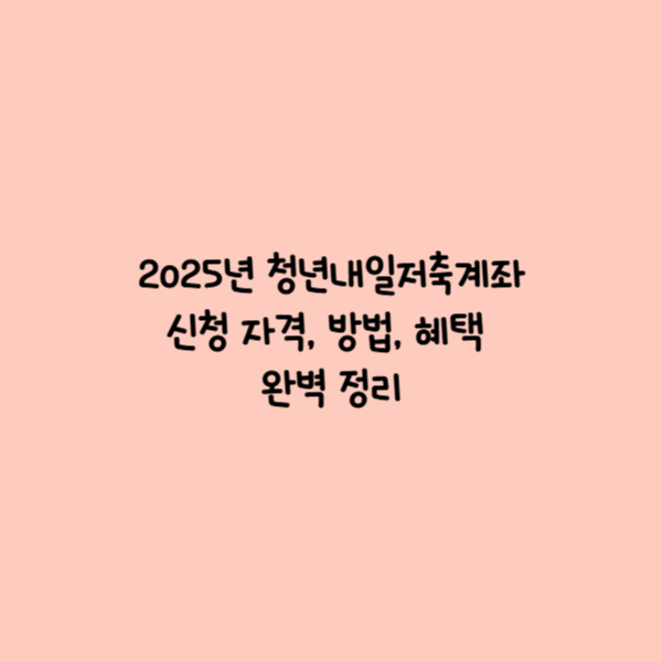2025년 청년내일저축계좌는 정부의 든든한 재정 지원으로 자산 형성을 돕는 절호의 기회입니다. 특히 근로 활동 중이면서 일정 소득과 재산 요건을 충족하는 청년이라면 꼭 신청을 고려해보는 것이 좋습니다.