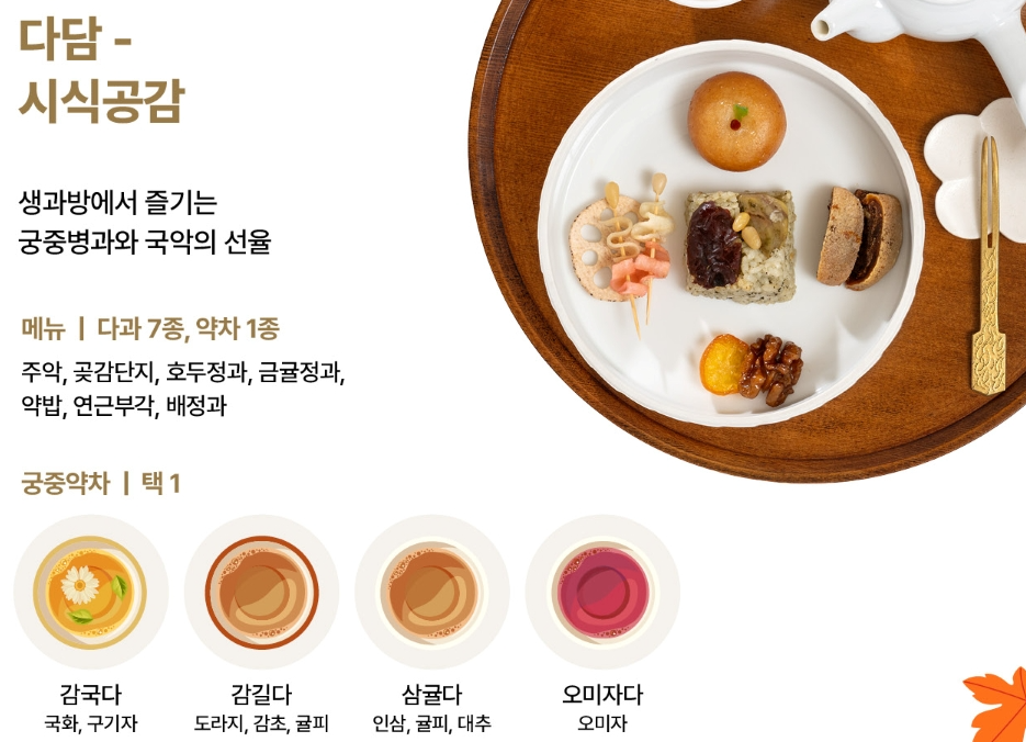 전통 궁중 다과를 직접 맛볼 수 있는 코스입니다.