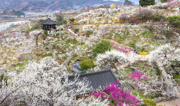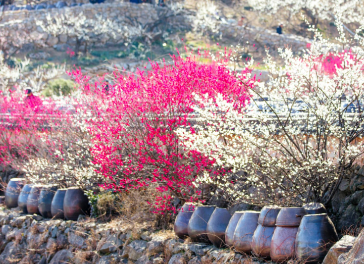 1. 매화 개화 감상 – 섬진강을 따라 펼쳐진 수십만 그루의 매화나무가 장관을 이룸