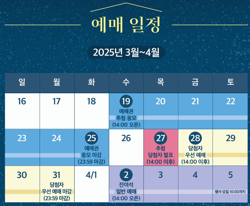 - 당첨되지 않은 경우, 4월 2일 14시 이후 잔여석 예매를 노려보세요!