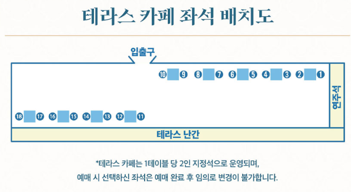 • 비가 예상되는 날에는 1~10번 좌석을 선택하는 것이 좋습니다.