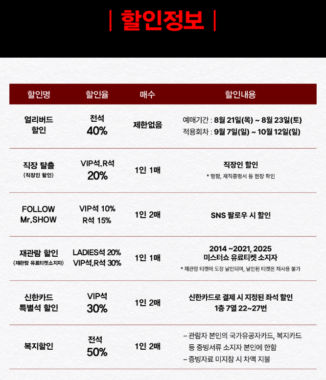 이처럼 단기간 진행되는 프로모션이기 때문에, 공연을 계획하고 있다면 얼리버드 기간에 예매하는 것이 가장 경제적입니다.