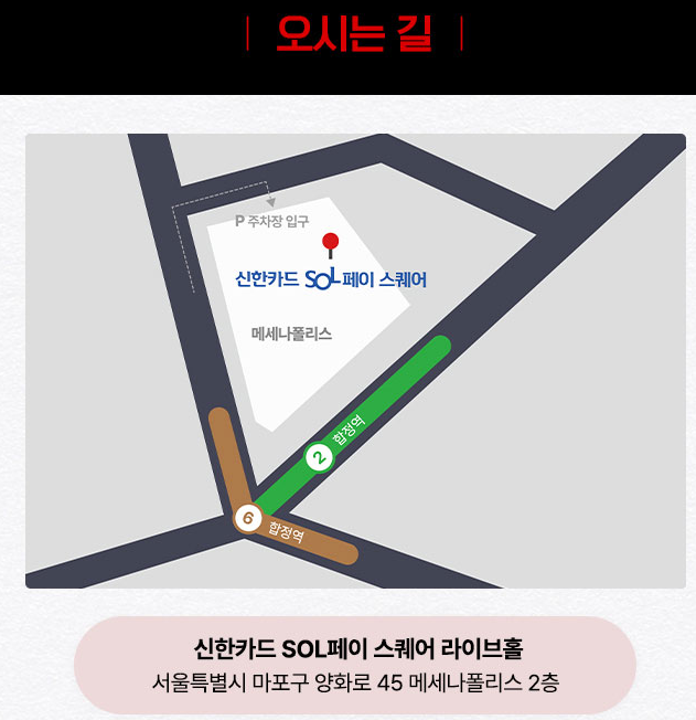 - 장소명: 신한카드 SOL 페이 스퀘어 라이브홀