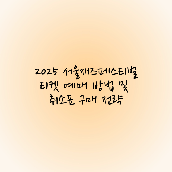 서울재즈페스티벌은 매년 많은 음악 팬들이 찾는 인기 페스티벌이기 때문에 티켓 예매 경쟁이 매우 치열합니다. 따라서 사전에 철저하게 준비하고, 예매 실패 시에도 취소표를 노리는 전략을 활용하면 원하는 티켓을 확보할 수 있습니다.