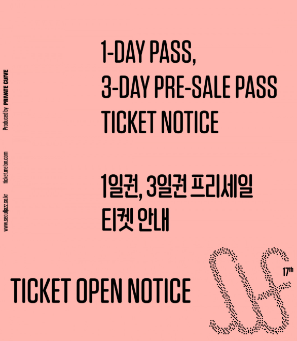 서울재즈페스티벌은 3일권과 1일권 티켓을 판매합니다.