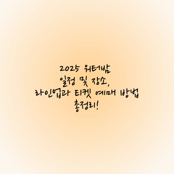 올해도 어김없이 서울 잠실에서 열리는 2025 워터밤 일정, 장소, 라인업, 티켓 예매 방법을 자세히 정리했으니, 올여름을 더욱 뜨겁고 시원하게 보내고 싶다면 지금부터 꼼꼼히 살펴보세요!