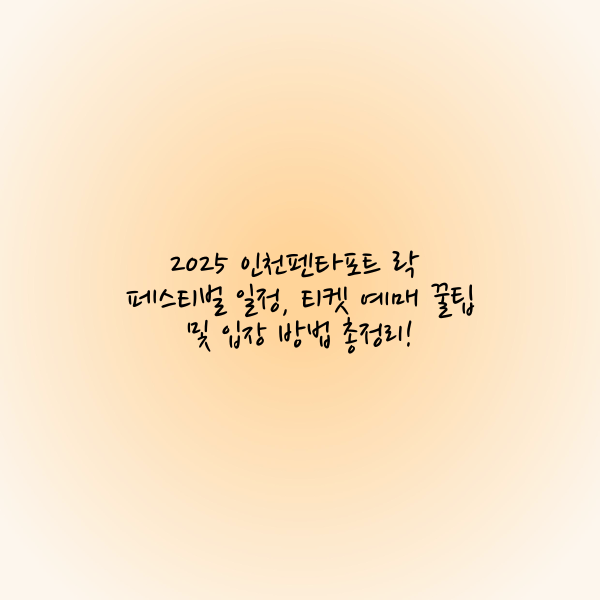 이번 글에서는 2025 인천펜타포트 락 페스티벌의 일정, 장소, 티켓 예매 방법, 가격, 입장 유의사항 등 참가를 위한 모든 정보를 한눈에 보기 쉽게 정리해드리겠습니다.