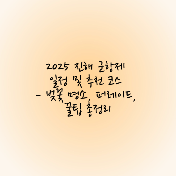 꿀팁: 군항제 주요 행사(퍼레이드, 에어쇼 등)를 함께 즐기고 싶다면 일정에 맞춰 동선을 조정하세요!