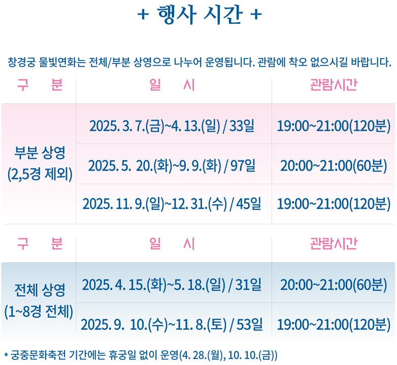 🔹 2025 창경궁 물빛연화 기간 및 시간