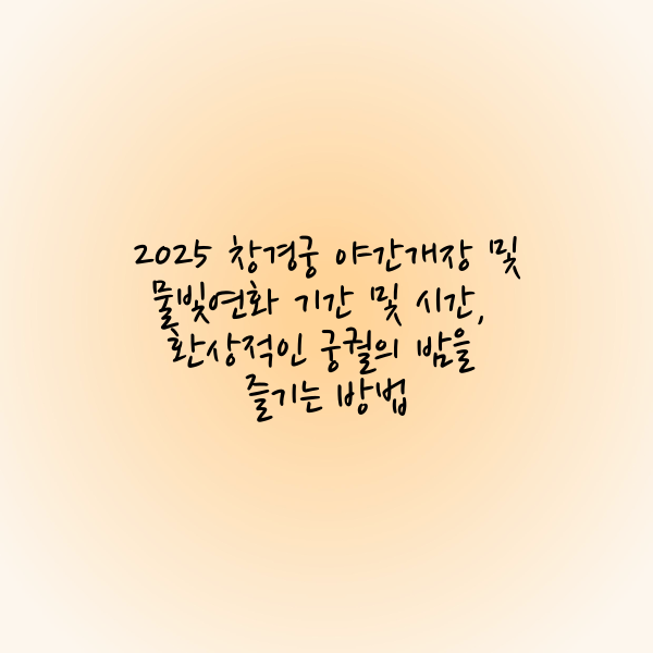 2025년 창경궁 야간개장은 단순한 궁궐 관람을 넘어, 빛과 예술이 어우러진 감성적인 경험을 제공하는 특별한 이벤트입니다.