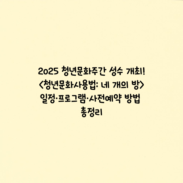 청년들의 문화 감각과 라이프스타일을 한층 업그레이드할 특별한 문화 축제가 서울 성수에서 열립니다. 바로 **문화체육관광부 주관 ‘2025 청년문화주간 <청년문화사용법: 네 개의 방>’**입니다.