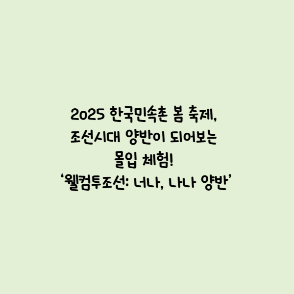 경기도 용인에 위치한 한국민속촌이 올해도 특별한 봄 축제를 선보입니다. 바로 조선시대 신분제와 족보 위조라는 흥미로운 테마를 바탕으로 기획된 체험형 축제, **‘웰컴투조선: 너나, 나나 양반’**입니다. 단순한 구경이 아닌 직접 양반이 되어보는 몰입형 콘텐츠로, 가족, 연인, 친구 누구와 함께 가도 색다른 즐거움을 만끽할 수 있는 이색 여행지로 주목받고 있죠.