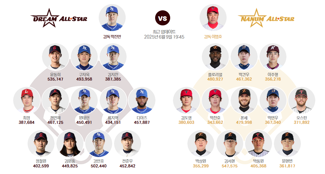 올스타전에 출전하는 선수들은 팬들의 손으로 직접 선발됩니다. 매년 뜨거운 열기를 자랑하는 팬 투표는 2025년에도 어김없이 진행됩니다.