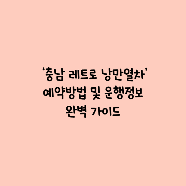 ‘충남 레트로 낭만열차’는 단순한 관광을 넘어 추억, 감성, 역사, 자연을 모두 담은 종합 여행 프로그램입니다.