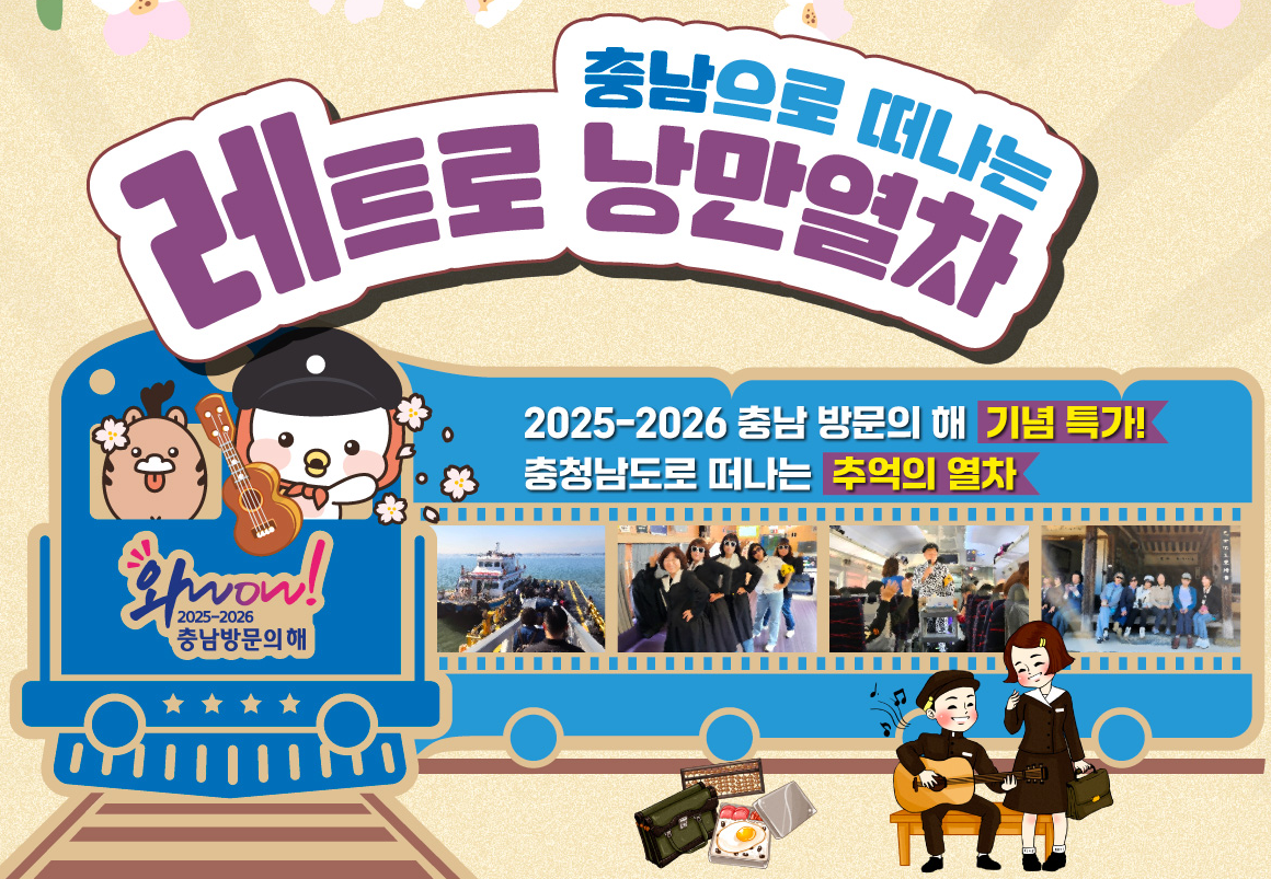 2025~2026년은 충청남도 방문의 해로 지정되어 다양한 관광 콘텐츠가 기획되고 있습니다. 그중에서도 특히 눈에 띄는 프로그램은 바로 ‘충남 레트로 낭만열차’입니다. 이색적인 기차 여행으로 복고 감성 가득한 열차를 타고, 충남의 대표 관광지를 하루 만에 둘러볼 수 있는 특별한 상품인데요.