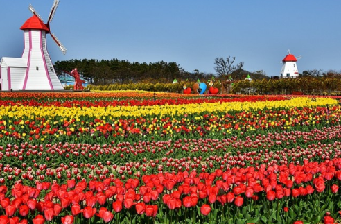 • 전라남도 신안군 대광해수욕장길에 자리한 신안 튤립공원은 튤립광장, 튤립원, 토피어리원, 유리온실, 품종전시포, 수변정원, 동물농장, 해송 소나무 숲길 등으로 아름답게 조성되어 있습니다. 이곳에서는 4월 5일부터 14일까지 임자도 튤립 & 홍매화 정원에서 신안 튤립축제가 열립니다. 이번 축제의 슬로건은 '누려라!!! 느껴라!!! 즐겨라!!! 형형색색 튤립으로…'로 백만송이의 튤립을 만나볼 수 있습니다.