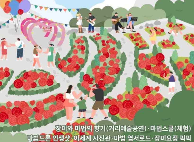 - 특별한 체험 프로그램도 준비되어 있습니다. 장미 모양의 소품을 만들어보거나 장미 타로체험을 즐기실 수 있습니다. 또한, '드론 인생샷 부스'에서는 드론으로 장미공원을 촬영하여 특별한 추억을 남길 수 있습니다.