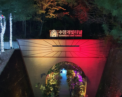 - 수양개 빛터널은 빛과 음향의 조화로 아름다운 퍼포먼스를 선사합니다. 다채로운 LED 조명과 벽에 비춰지는 프로젝션 매핑 등을 통해 매력적인 모습을 연출하며, 빛과 음악이 어우러져 창의적인 공간을 조성합니다. 특히, 일몰 이후 방문하면 더욱 환상적인 풍경을 감상할 수 있습니다.