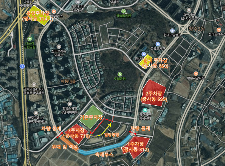 작년과 동일하게 올해도 넉넉한 주차 공간을 제공하여 방문객들이 편리하게 축제를 즐길 수 있도록 준비되었습니다. 걱정 없이 차량을 이용해 양주 천일홍 축제를 방문하세요.