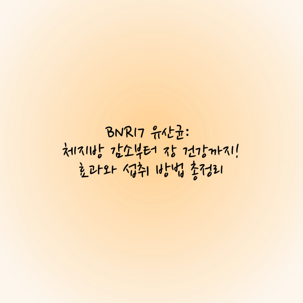 BNR17 유산균: 체지방 감소부터 장 건강까지! 효과와 섭취 방법 총정리