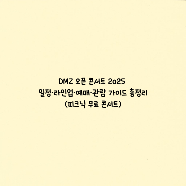 이번 글에서는 DMZ 오픈 콘서트 2025의 일정, 장소, 라인업, 예매 방법, 구역별 혜택, 입장 안내, 교통편, 주변 관광 정보, 관람 꿀팁까지 전부 자세히 정리하겠습니다.
